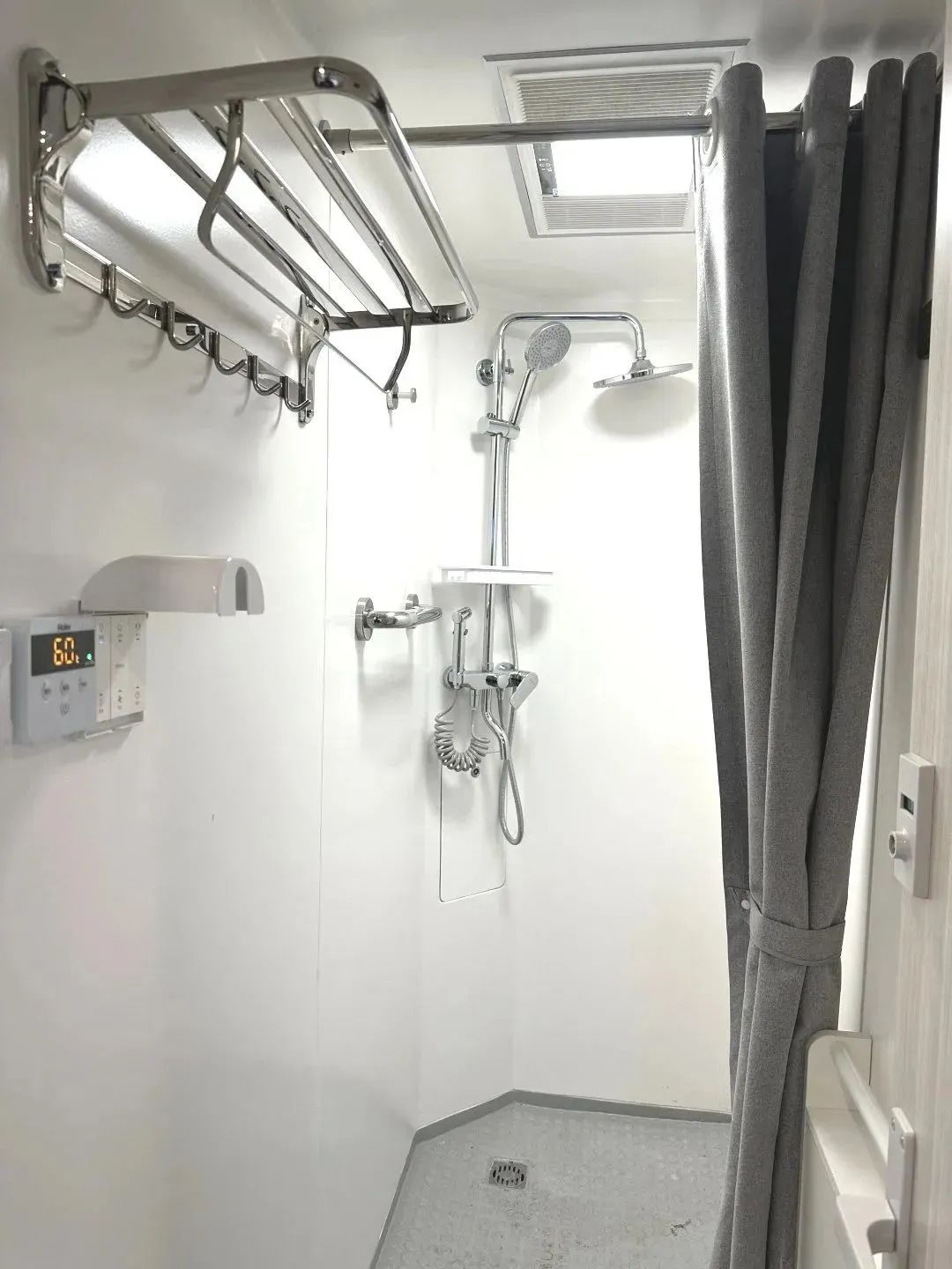 车厢两头配有一个大淋浴间、洗漱台