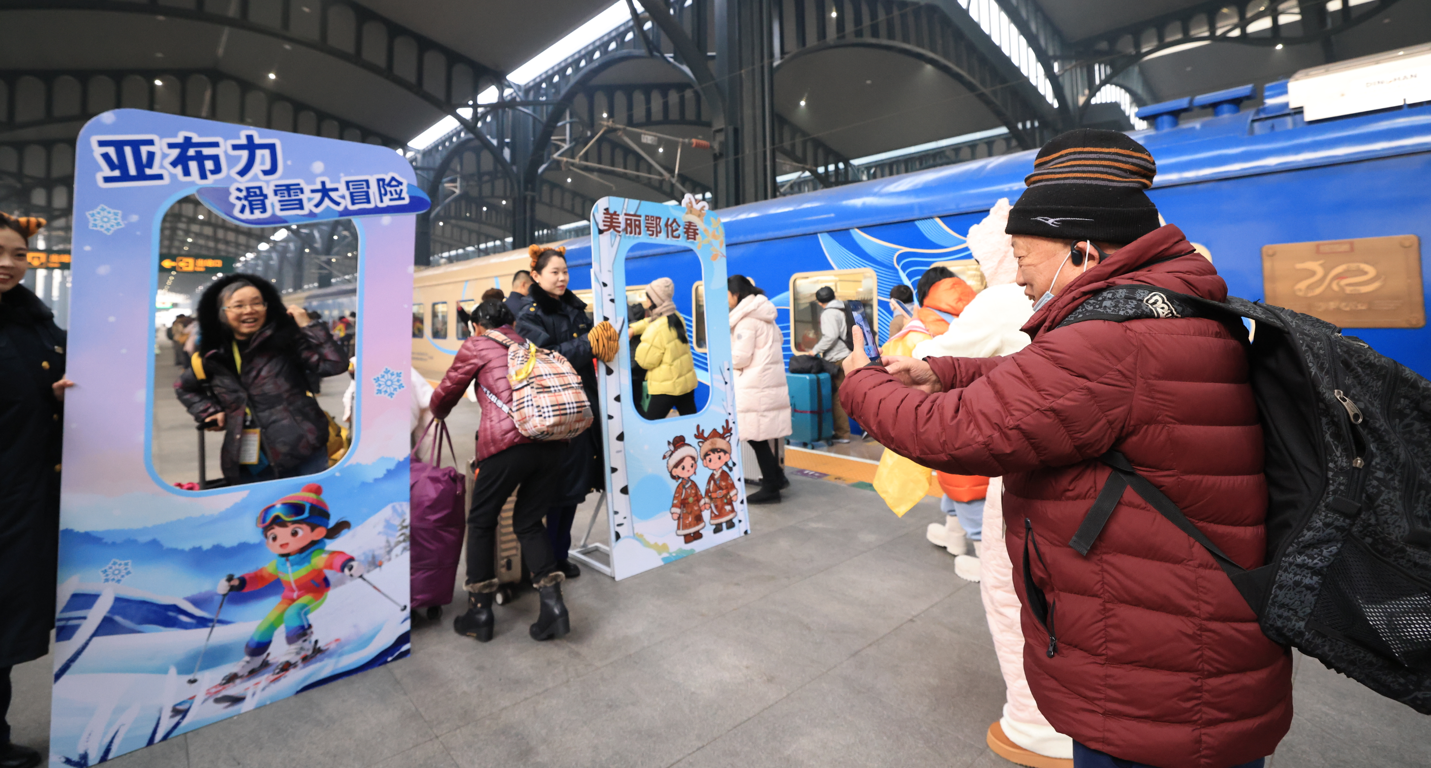 11月26日8时,来自长三角、珠三角地区的300余名游客在哈尔滨站登上Y783次“悠享龙江·银旅号”旅游列车,开启为期6天的“找北”之旅。该趟列车是中国铁路哈尔滨局集团有限公司今冬开行的首趟高品质冰雪旅游列车。