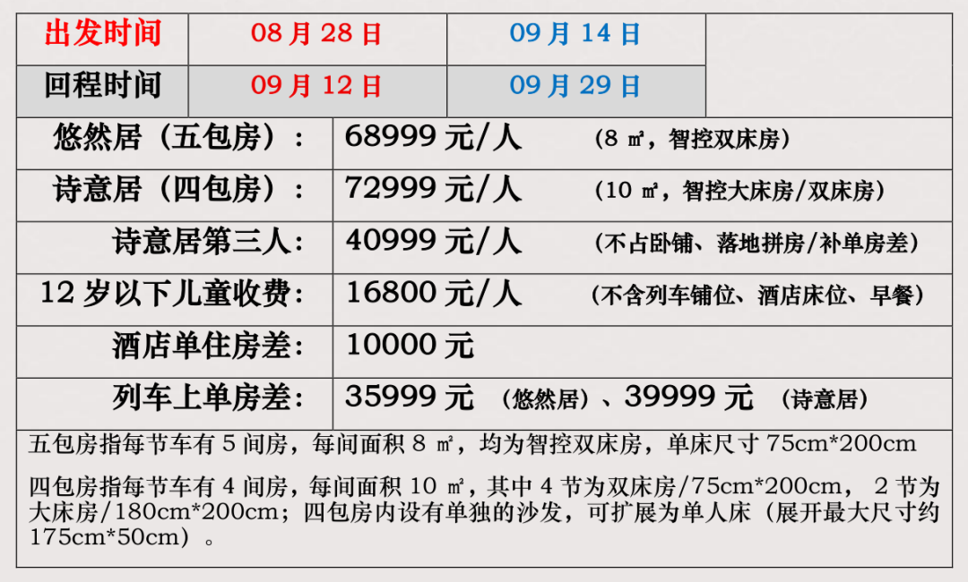交通:成都号高端熊猫专列席位+旅行目的地专用空调旅游车辆。